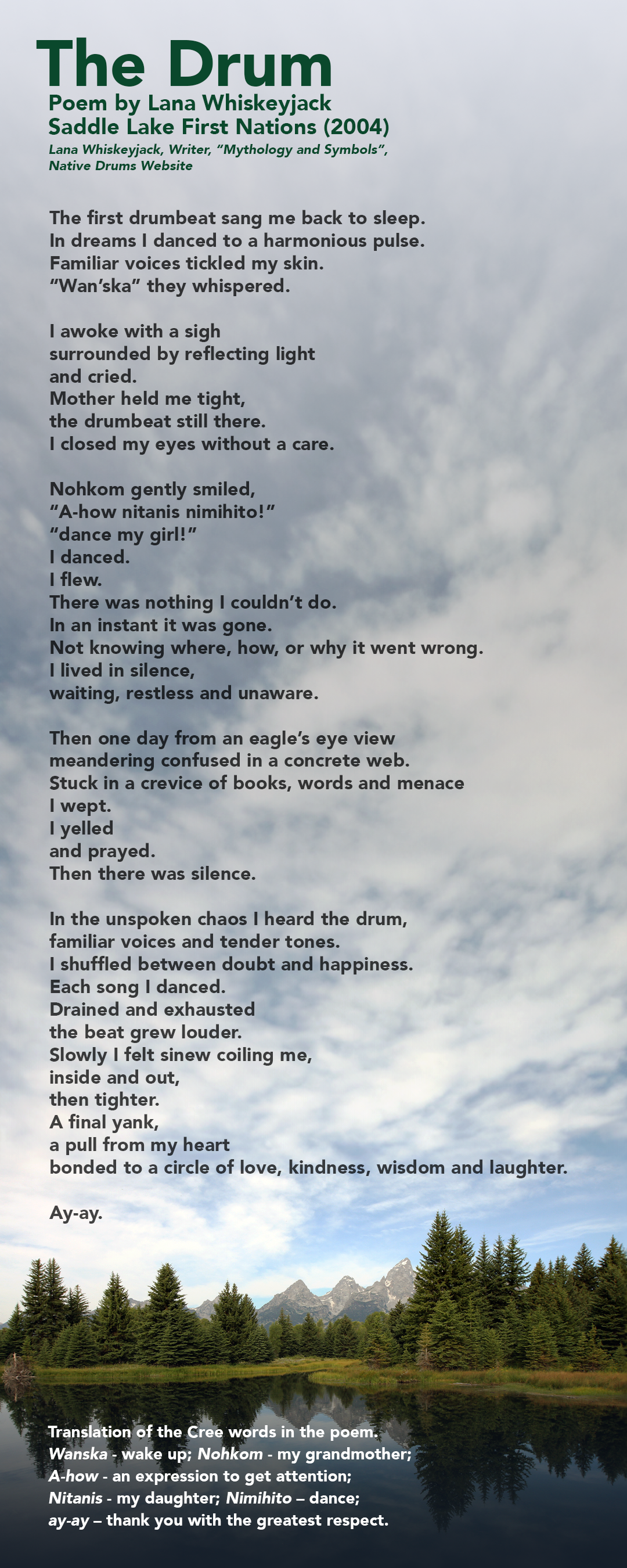 “Drum is a voice, a prayer to Spirit, is the voice of the Earth coming through to speak of its heart. Drumming connects us to our Creator, connecting our heart to the heartbeat of the Earth. It is a way to connect one’s spirit with the Great Spirit.” ~Terriea Harris, BWSS Aboriginal Women’s Outreach Counsellor